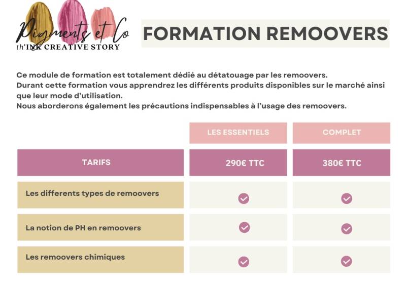 Formez-vous aux techniques innovantes des removers et proposez à vos clients une solution efficace et durable pour se débarrasser de leurs tatouages indésirables.